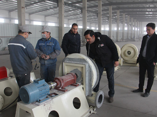 2015年8月,來自埃及的客戶對我司玻璃鋼耐酸堿風(fēng)機(jī)的風(fēng)壓、風(fēng)量、電流等進(jìn)行了檢測,并與我司技術(shù)領(lǐng)導(dǎo)進(jìn)行了風(fēng)機(jī)技術(shù)交流,客戶給予了很高的評價(jià),認(rèn)為我公司產(chǎn)品很符合他們公司對供應(yīng)商的考核標(biāo)準(zhǔn),達(dá)成合作協(xié)議。